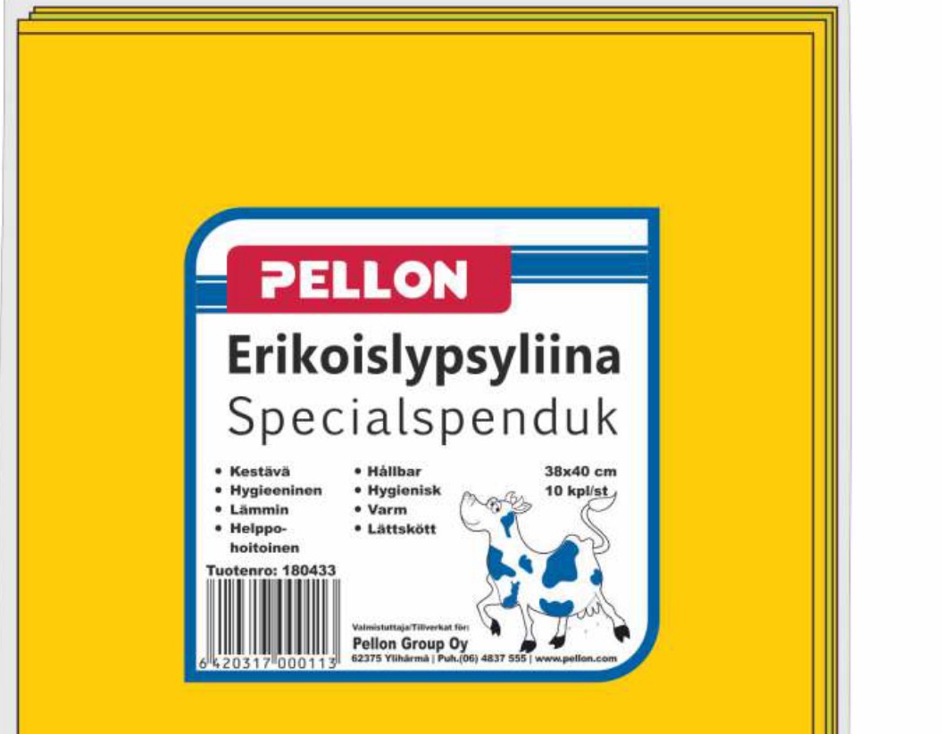 150gr/m2 Needle Punched Wipes, 70% viscos 30% polyester Keltainen, 40x38cm, 1/4 folded, 10kpl. per pakkaus.