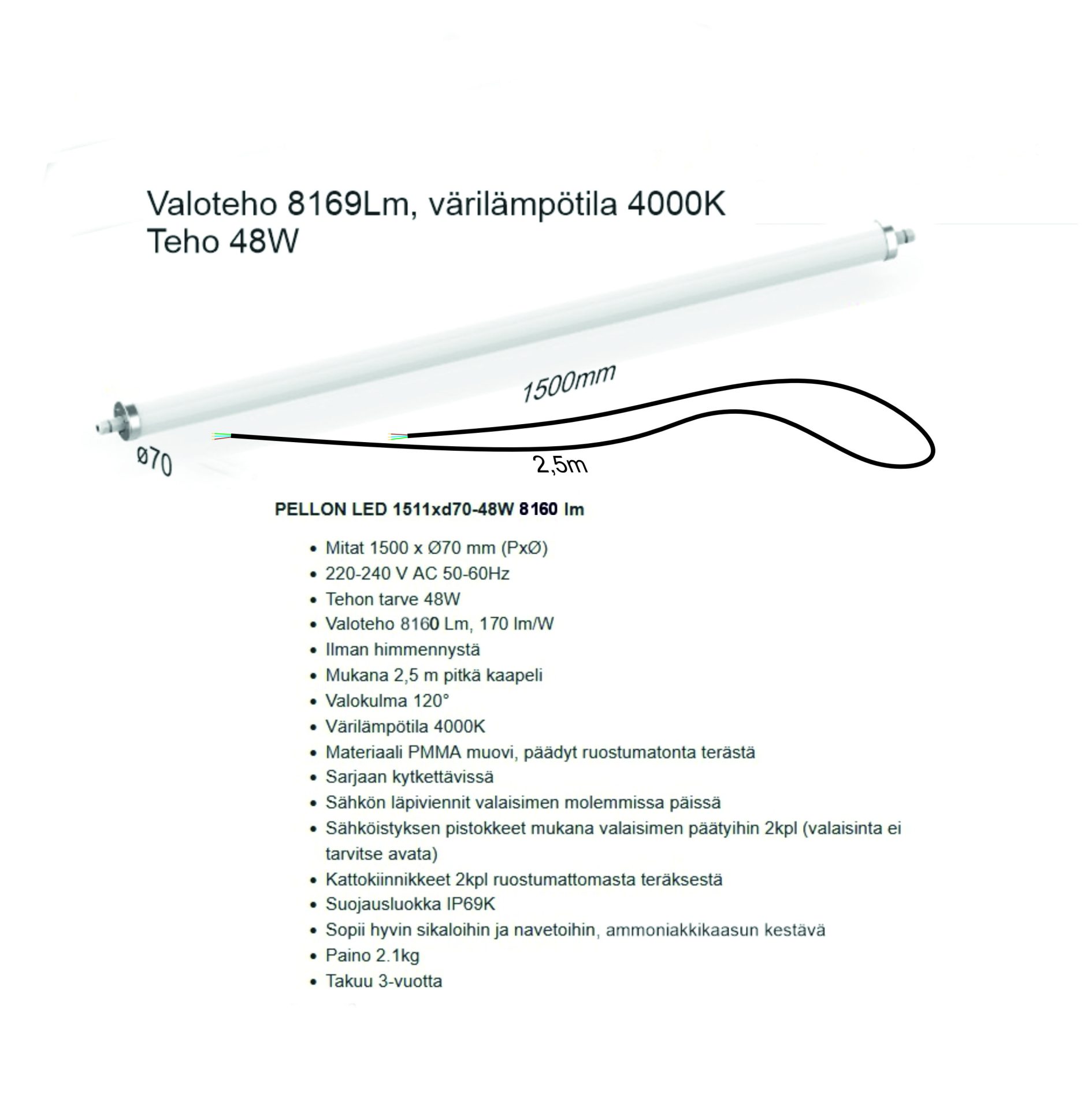 ilman säätoä, 2,5m kaapelilla, D-mark, Valoteho 8160 lm, värilämpötila 4000K, Tehontarve 48W