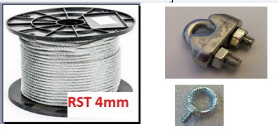 130158 Teräsköysi 4 mm haponk. 10 m 130160 Vaijerilukko 5 mm haponk. 8 kpl 120132 Nostosilmukkaruuvi M10 4 kpl